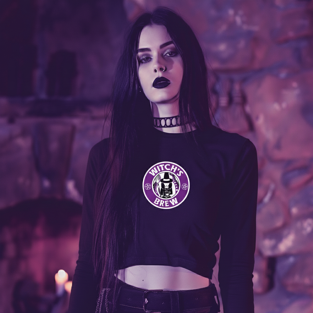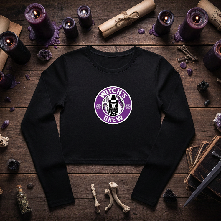 Crafted for modern witches with timeless style, the Witch’s Brew Long Sleeve Baby Tee blends dark charm and flattering form. Made with soft, micro-ribbed cotton and a sleek, body-hugging cut, this shirt is perfect for layering under cloaks—or commanding attention on its own.